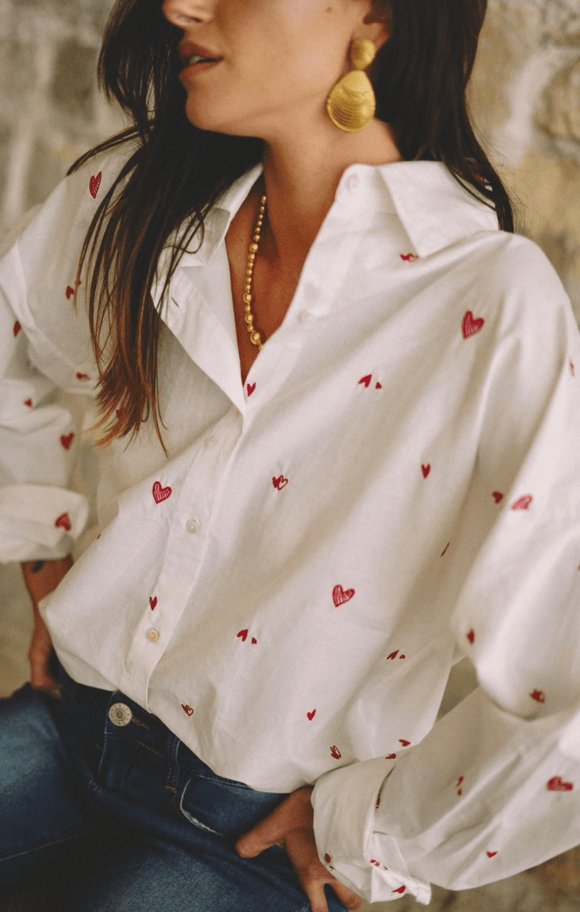 Chemise broderies coeurs