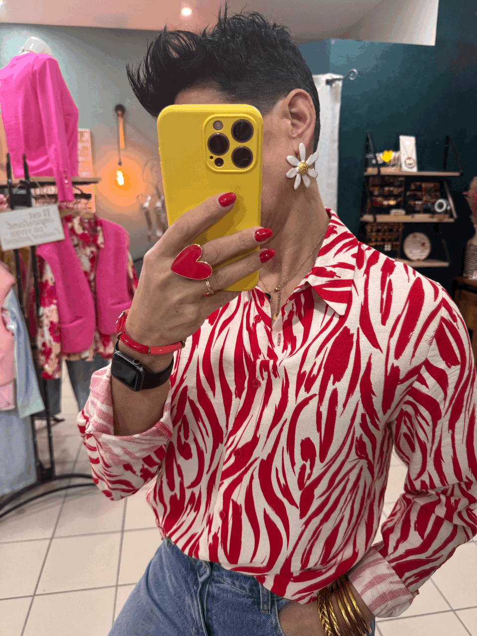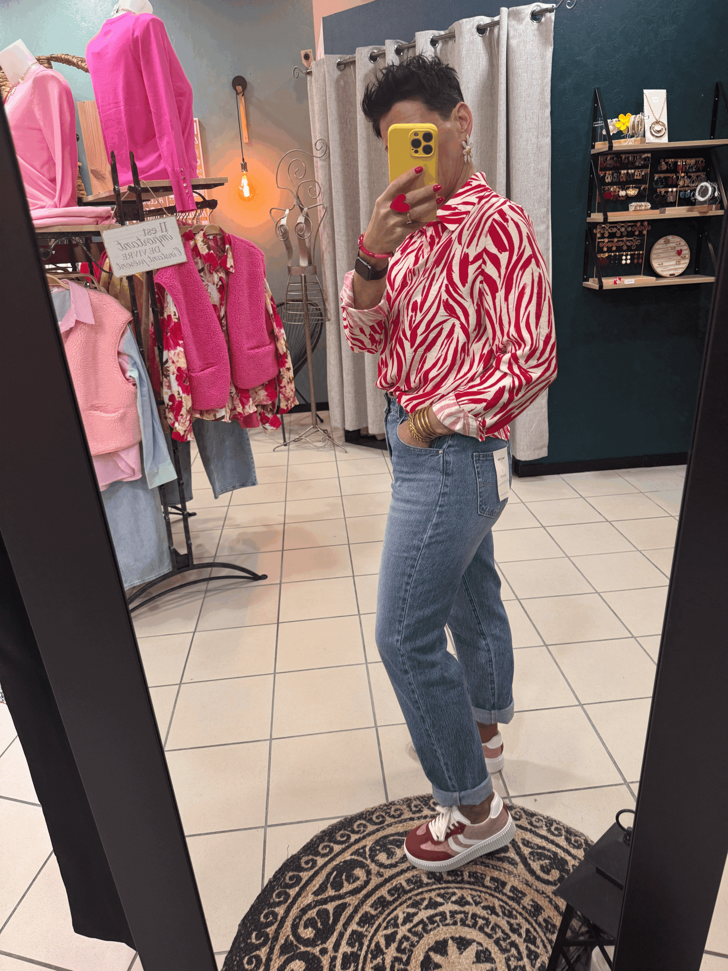 Imprimé rouge et beige