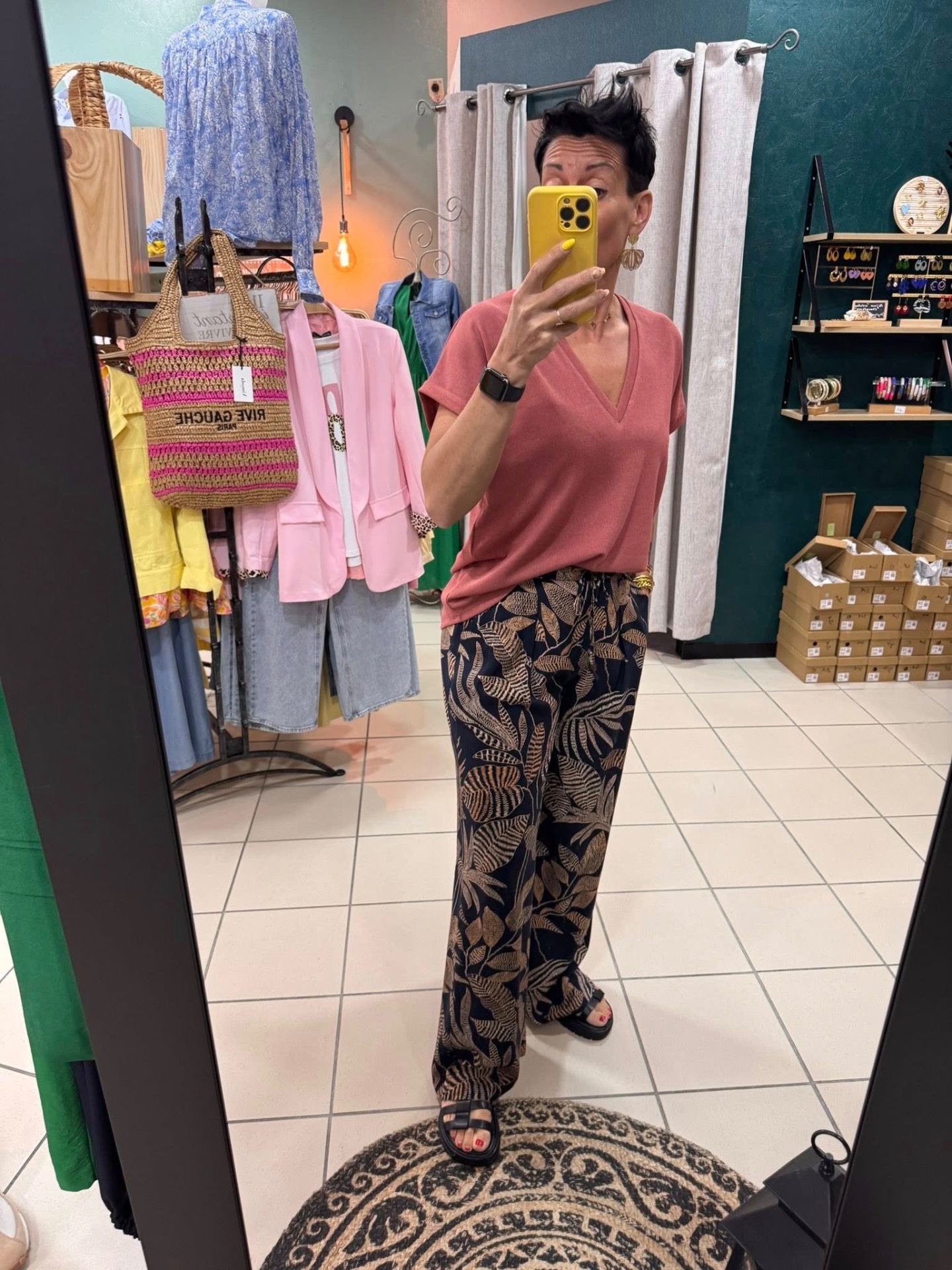 Taille élastiquée sur l'arrière et plat sur le devant avec un lien.