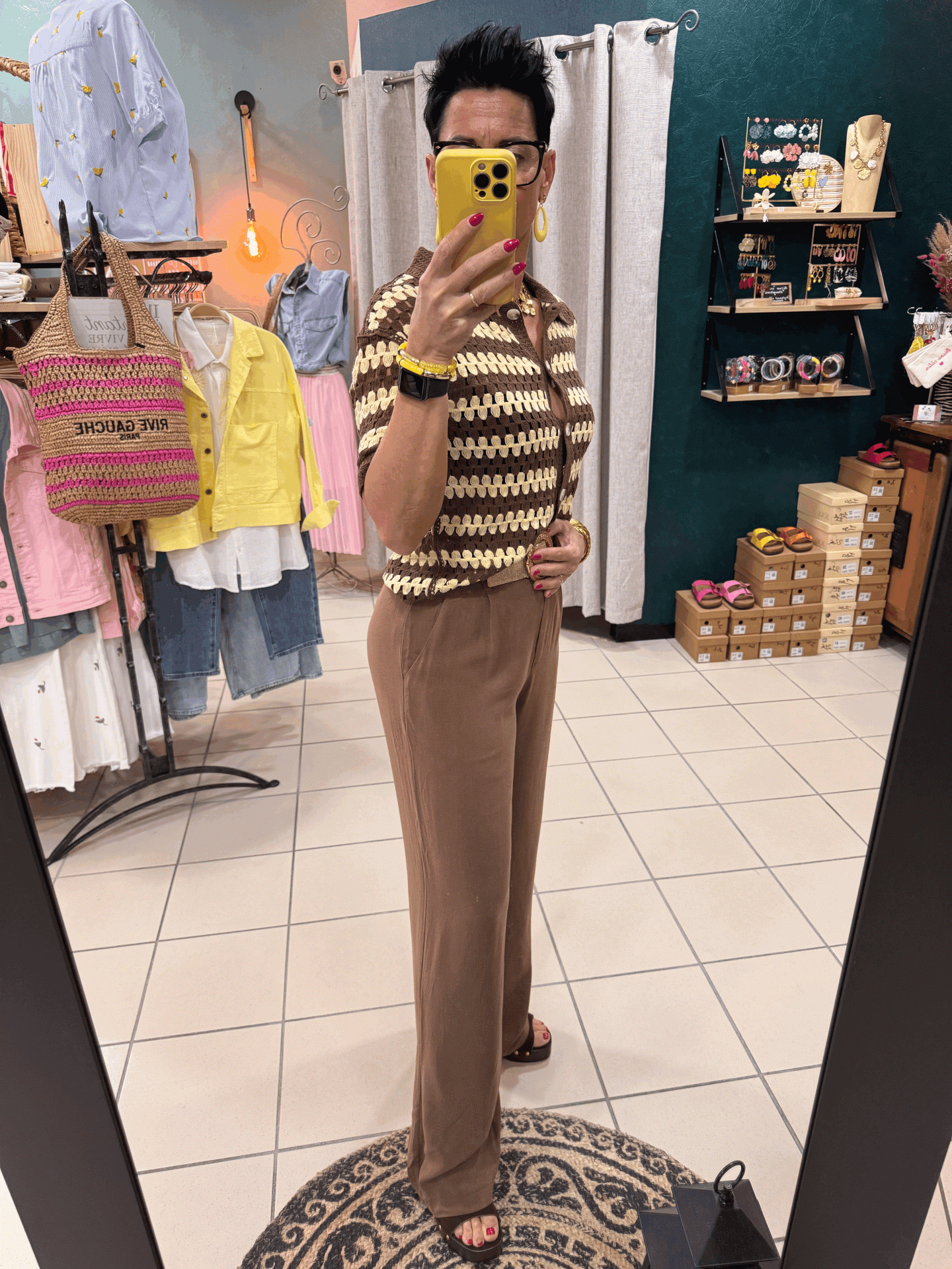 Poches sur le devant , fermeture zippée avec bouton et crochet.