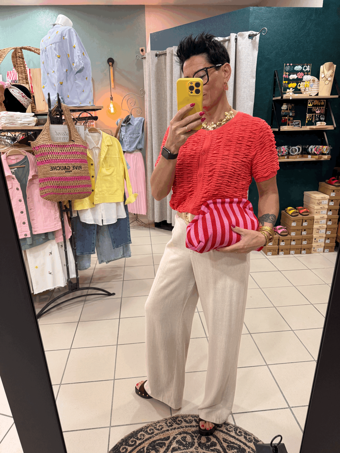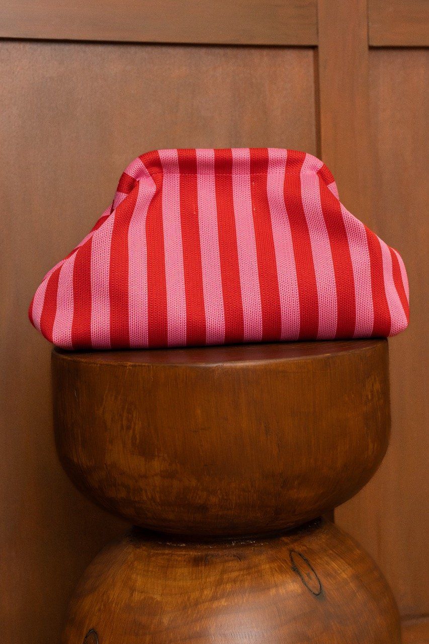 Pochette ou Vanity rayée rouge/fushia