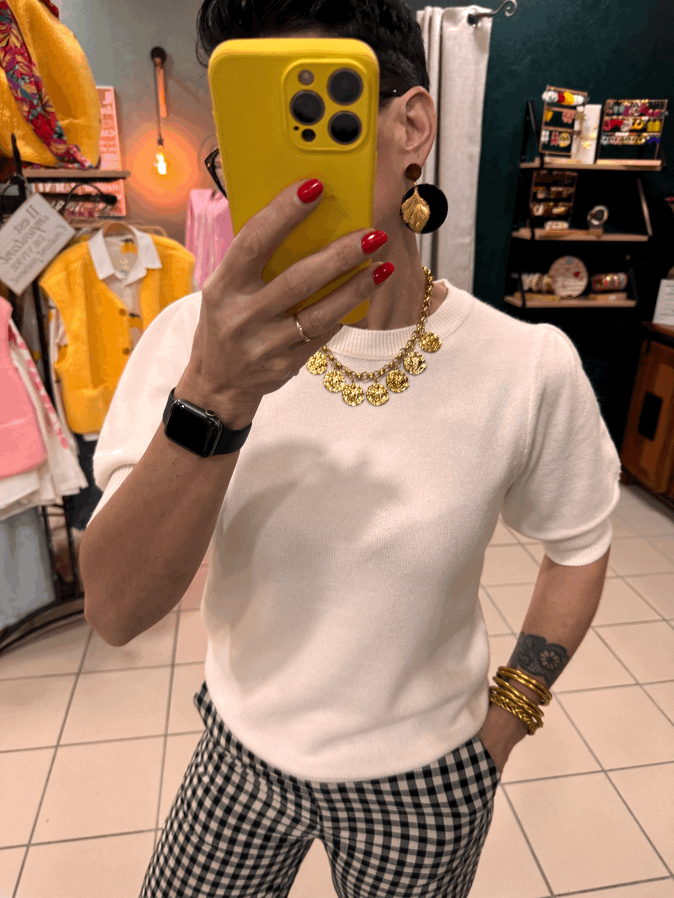 Pull manches courtes blanc, manches ballons (taille grand), forme droite.