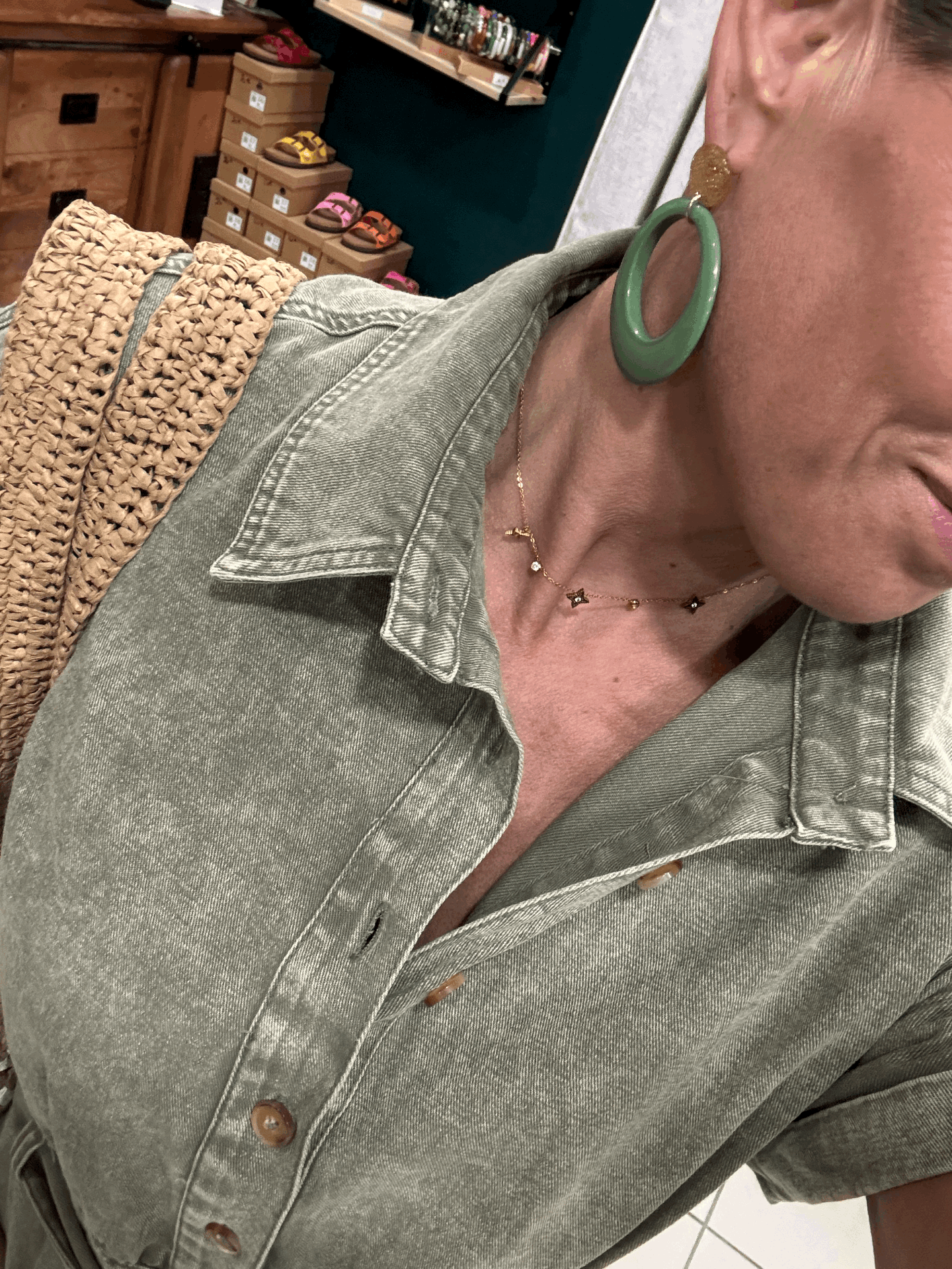 poches plaquées à l'avant et fermeture éclaire et boutons